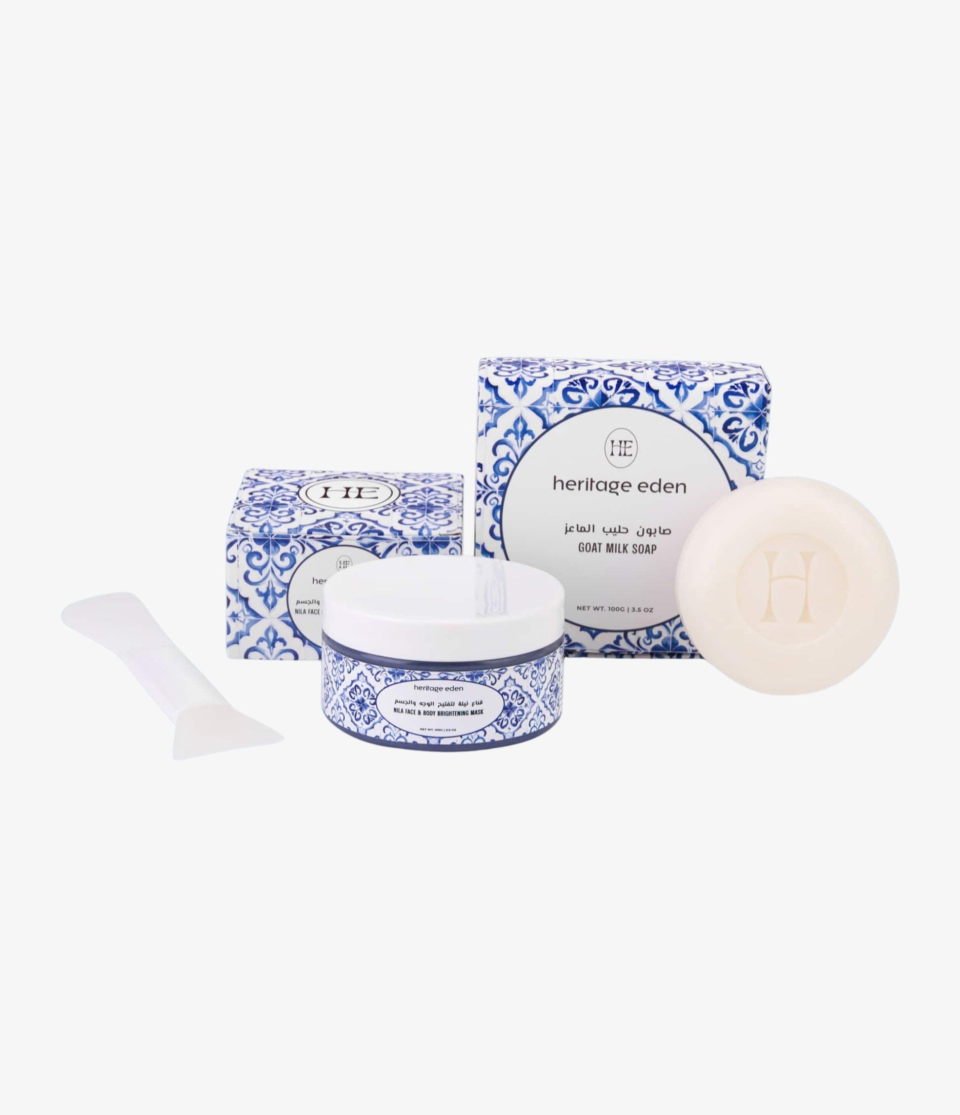 تجمع هذه المجموعة الحصرية بين صابون حليب الماعز وقناع نيلا لإخفاء العيوب والبقع الداكنة وتوحيد لون البشرة. معًا، يُقدمان روتينًا متكاملًا لبشرة ناعمة ومشرقة ومتجددة بشكل واضح.