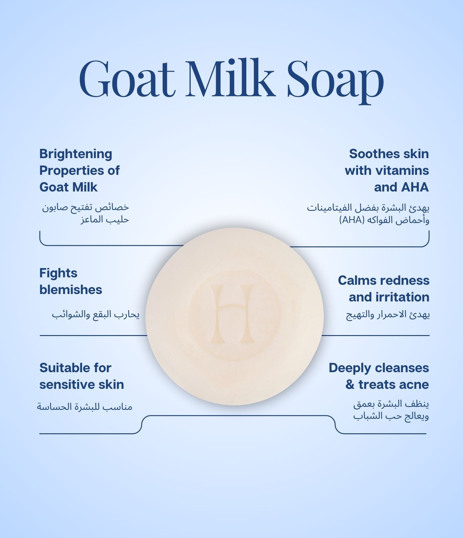صابون فرنسي الصنع ينظف البشرة بعمق وينقيها ويغذيها بفضل حليب الماعز الغني بفيتامينات أ، د، وهـ . يزيل الشوائب، ويهدئ الاحمرار، ويخفي البقع الداكنة، ويعيد إشراقتها الطبيعية .