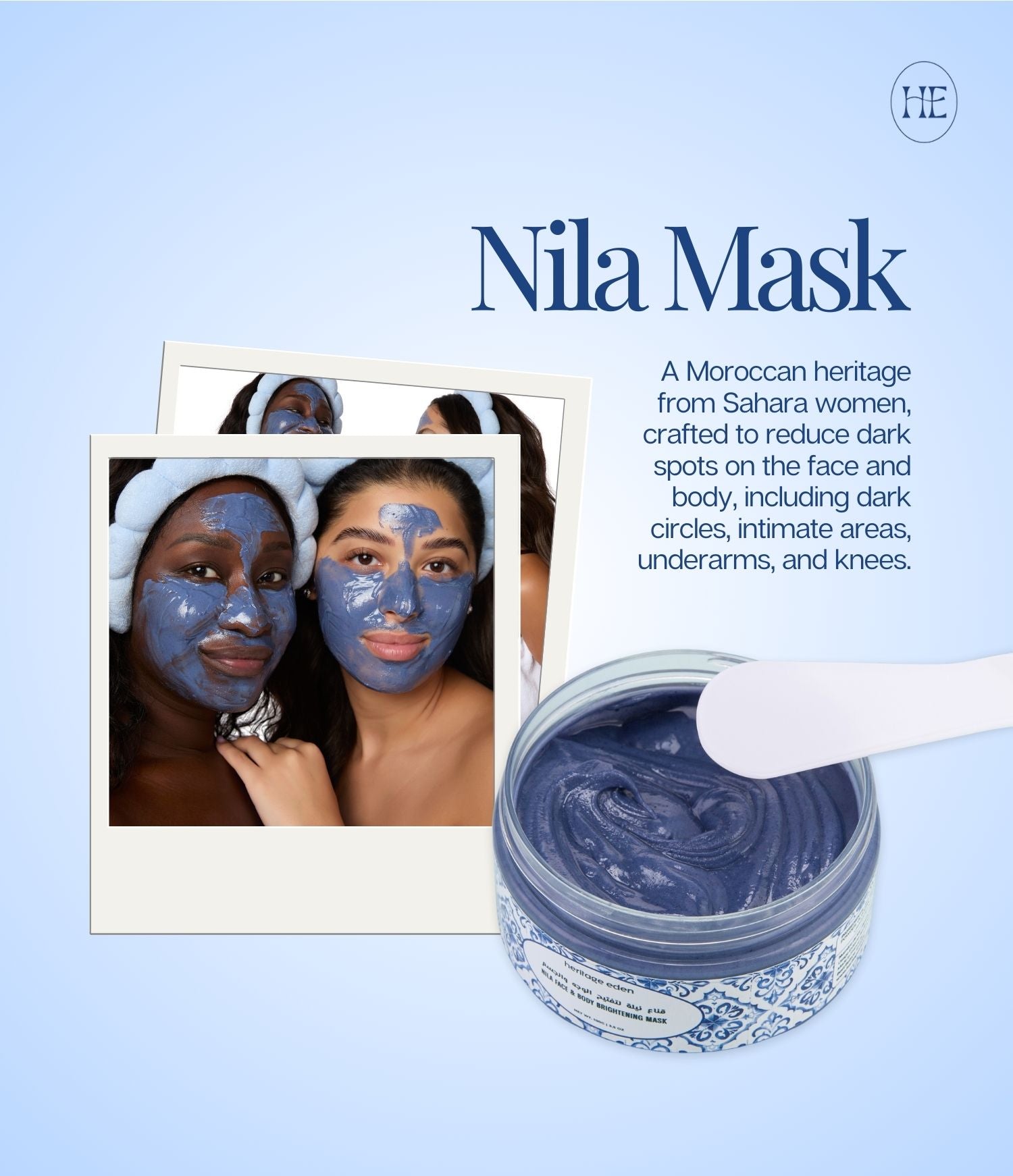 This iconic blue mask, inspired by Saharan beauty rituals, targets dark spots, evens out skin tone, and soothes irritation on delicate areas like the face, underarms and intimate parts. Visible results from the first uses.